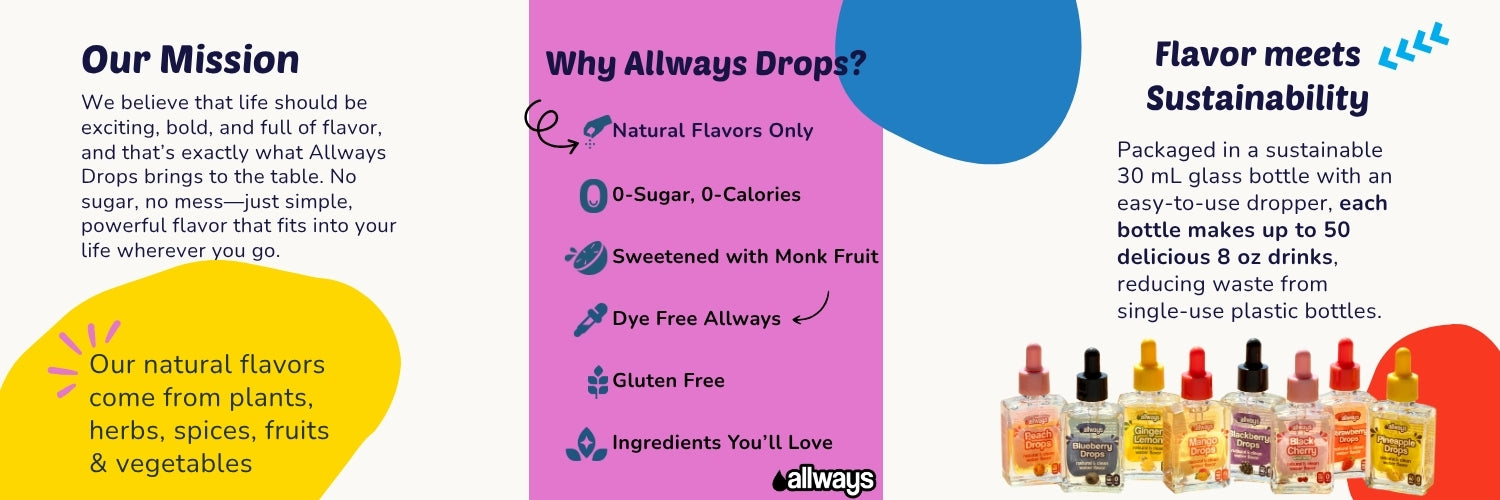 Did you know that 47% of people are not drinking enough water, and nearly 1 in 4 older adults are considered dehydrated? Allways Drops is here to change this with bright, natural flavors that makes every sip a moment to enjoy!